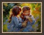 Картина маслом с детьми " Девочки с питомцем " написан на холсте. холст натянут на подрамник , 100% хлопок.,масляными художественными красками .