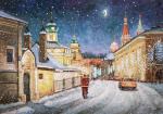 Картина маслом на холсте. Разживин Игорь. Белый снег летает, блещут фонари