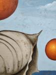 На холсте изображены сочные апельсины, символизирующие тепло и радость, в сочетании с загадочной морской раковиной, которая привносит атмосферу спокойствия и мечтательности. Каждая деталь картины пронизана светом и радостью, создавая ощущение тропического рая. Яркие цвета и необычные формы привлекают внимание и вдохновляют на новые идеи. Эта работа идеально подойдет для украшения вашего дома, квартиры, или офиса .