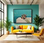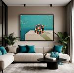 Эта работа воплощает в себе симфонию цвета и формы в стиле минимализм. Кубик Рубика, ставший центром композиции, символизирует игру разума и поиски гармонии в повседневной жизни.