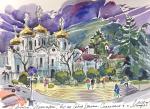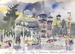 Ключевые слова: Пятигорск, курорт, Кавказские Минеральные воды, акварель, городской пейзаж, реализм, вход в Цветник, китайская беседка, орел, кофейня Гукасова