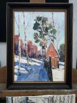 Ключевые слова: Мартовское солнце, синие тени, забор, садовый домик, избушка Лешего, деревья.