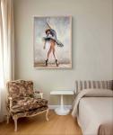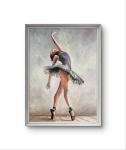 Картина маслом на холсте размером 80х60 см, запечатлевающее грацию и изящество балетного танца. Эта картина олицетворяет момент, когда танцовщица, облачённая в элегантный костюм, выполняет впечатляющее движение, подчеркивая каждую линию своего тела и динамику танца. Нежные оттенки серого и яркие акценты на фигуре создают сказочную атмосферу, привнося в интерьер нотку изысканности и романтики. Идеально подойдет для любителей искусства, балета и всех, кто ценит гармонию движения.