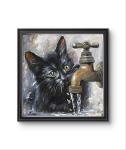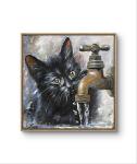 Картина маслом, представленная на холсте, захватывает трогательный и любопытный момент: маленький черный котенок с интересом наблюдает за льющейся водой из крана. Яркие и блестящие глаза котенка, полные любопытства и удивления, привлекают внимание, создавая живую и дружелюбную атмосферу. Детальная работа мастера, отраженная в текстурах шерсти и металла, придаёт картине реалистичность и глубину. Это произведение искусства станет очаровательным дополнением для любого интерьера, приносящим уют и тепло.