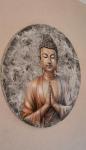 Будда намасте. Круглая картина с элементами барельефа