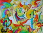 и ироничным, присуща экспрессивность и драматизм. В данной работе эмоциональный накал читается и в напряжённых позах шаржированных персонажей, и в цветовой гаме.