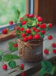 Картина маслом на холсте. Камский Савелий. На даче у бабушки. Красная смородина