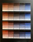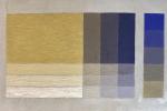 2 столбца, в каждом по пять ступеней перехода от жёлтого к фиолетово-синему. Жёлтая в каждый столбце соответствует Неаполитанской в сете слева. Фиолетово-синий – это взятый в разбеле Dioxazine Blue #406 / W&N.