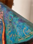 Сакральные узоры — мандалы: На поверхности панциря, словно древние обереги или схемы мироздания, расположены несколько объемных мандал, созданных по трафарету из текстурной пасты. Они сияют благородной поталью (сусальное золото), притягивая свет и взгляд. Эти мандалы — символы целостности, гармонии и духовного центра, к которому ведет этот путь освобождения.