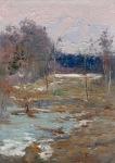 Весенняя оттепель часто сопровождается похолоданием. В сказках мы читаем описание этого времени как борьбу зимы с весной, где весна побеждает коварную зиму. Это благодатное для художника время, очень нежные и тонкие живописные нюансы.
