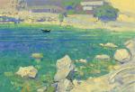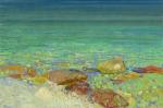 Эта яркая пронизанная светом картина отразила жаркий день в гавани курортного города Турунч где художником написан прибрежный пейзаж, залитый солнцем. На переднем плане три парусника грациозно покоятся на мерцающих бирюзовых водах, каждый из которых идеально отражает тишину окружающей гавани. Береговая линия представляет собой гармоничное сочетание мягкого песка и каменистой местности, обрамленной единственной пальмой, что создает ощущение идиллического уединения. На заднем плане величественно возвышаются Таврские горы, чьи суровые очертания смягчаются пышным покрывалом зелени. Мастерское использование художником цвета и света создает яркое ощущение глубины и атмосферы, а тщательное внимание к деталям лодок и пейзажа добавляет динамичный реализм. Эта картина излучает ощущение умиротворенного уединения и вневременной красоты, приглашая зрителя погрузиться в ее живописное спокойствие. Взаимодействие природных элементов, представленное в этой работе, одновременно завораживает и вызывает эмоции.