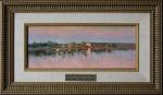Этот натурный этюд художник написал в 2001 году в Великом Устюге на закате, в белую ночь на набережной у реки Сухона. Это завораживающее произведение искусства представляет собой тихий пейзаж, элегантно обрамленный золотой, замысловатой рамкой. На картине изображена спокойная, отражающая свет вода, простирающаяся по холсту и повторяющая насыщенные цвета неба. Нежный градиент пастельных розовых, мягких голубых и оттенков лаванды доминирует в небе, создавая ощущение неземного сияния заката. Вдоль горизонта теневые силуэты листвы создают естественный барьер, а тонкие структуры подчеркивают спокойный пейзаж, добавляя глубины. Техника смешивания красок, использованная для поверхности воды, создает изысканный зеркальный эффект, подчеркивая безмятежную природу картины. Узкая горизонтальная ориентация произведения усиливает его панорамные качества, вовлекая зрителей в его мирное пространство. Прочная рама с текстурированным паспарту и латунной табличкой добавляет нотку формальности, гарантируя, что картина привлечет внимание в любом интерьере. В целом, произведение искусства предлагает гармоничный баланс цвета, текстуры и отражения.