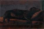 Этот натурную небольшую картину художник написал с натуры за один сеанс. Собаку породы Курцхаар звали Лайма, она жила у бабушки художника, была раскормлена, и довольно своенравна. Когда собака спала на диване, и бабушка забиралась спать на диван собака залезала на диван в пространство между спящей бабушкой и стенкой дивана, и вытесняла бабушку с дивана на пол. Бабушка не возражала.