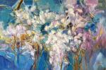 На этой картине голубой фон символизирует чистое небо весной, белые цветы олицетворяют надежду и новое начало. Каждый цветок словно говорит о том, что после зимы всегда приходит время расцвета.