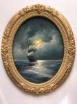 Картина маслом "Парусник в море" выполнена в материалах: холст на оргалите, масло, 29х23см (овал).
