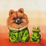 Мягкий плед, яркие краски, тщательность деталей, та нежность, с которой художница нарисовала розовый животик собаки и выразительные глаза- все это говорит о невероятной любви художницы к теме детства, животных, дружбы.