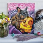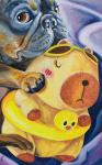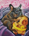 Картина маслом на холсте. Кириллова Юлия. Французский бульдог обнимает игрушку Капибару