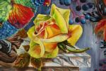 Картина маслом на холсте. Кириллова Юлия. Натюрморт с попугаем и желтой розой
