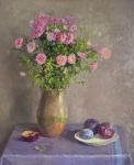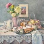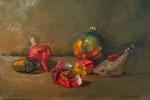 Вечерний натюрморт со старинными елочными игрушками, которые были у нас в детстве. Тонкая передача оттенков цветного стекла и умиротворяющий мотив - идеальное украшение изысканного интерьера и прекрасный подарок ценит]ел]м искусства и вещей с историей.