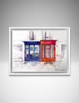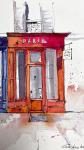 Эта акварель передает очарование парижских улочек с двумя расположенными рядом витринами — одна насыщенного синего цвета, другая тёплого красного. Контраст цветов придаёт картине энергию и индивидуальность, а изящная манера письма сохраняет лёгкость акварели. Картина передает повседневную поэзию Парижа, где небольшие кафе и бутики становятся символами вечной элегантности и романтики.