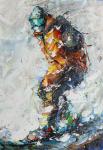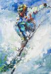 Яркая экспрессионистская картина передает момент, когда сноубордист, погруженный в вихрь снега, ощущает чистое удовольствие от скорости. Динамичные мазки, насыщенные цвета и энергия движения создают эффект присутствия, словно зритель сам несется вниз по склону.