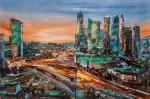 «Картина маслом "Вид на Москва-Сити на закате"»