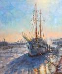 Картина – зимний Санкт-Петербург, передаёт одновременно суровую красоту зимней природы и величие инженерной мысли. Это размышление о взаимодействии человека и стихии, о спокойствии и силе, заключённых в морозном воздухе Петербурга. Полотно, написанное в стиле – импрессионизм, которое переносит в атмосферу морозного Петербурга. На картине запечатлён величественный корабль, застывший у берега замёрзшей Невы. Это произведение идеально дополнит интерьер ценителя морской тематики и северной эстетики. Солнечный пейзаж с видом на Неву. Художник Екатерина Тютина-Зайкова