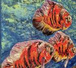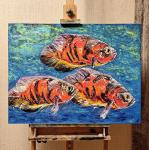 Картина рыбки Астронотус "Трио глубинах" — авторская живопись маслом