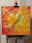 Абстракция с элементами пейзажа позволяет картине гармонично вписаться в любой интерьер.