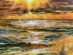 Картина с изображением прекрасного морского пейзажа, изображающая вечернее закатное небо. Написана профессиональными масляными красками на живописном холсте с подрамником. Без багета.