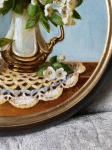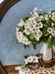 Ключевые слова: ажурная салфетка картина в прихожу картина в спальню картина в гостиную картина на стену в раме круглая картина стиль прованс цветочный натюрморт букет цветов цветущая груша