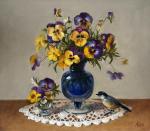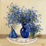 Ключевые слова: статуэтка ажурная салфетка цветочный натюрморт цветы синяя ваза синий цвет русский стиль незабудки