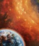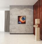 Картина написана в период эмоционального потрясения в период событий 2022года. Посыл в картине не нарушать хрупкого равновесия сил Добра и Зла - иначе последует закон кармического наказания. Создатель наблюдает, Создатель видит, как своими делами и поступками мы можем разрушить нашу прекрасную планету. Будьте осознанны каждую минуту, мы живем в переломное время.