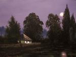 Ключевые слова: хутор пейзаж роман лактаев живопись маслом картина вечер снег первый деревья избы зима