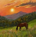 Картина летний пейзаж «Лошадь» написана масляными красками на холсте, натянутом на подрамник.