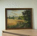 Картина летний пейзаж «Рожь поспела» написана масляными красками на холсте, натянутом на подрамник.