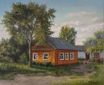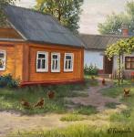 Картина деревенский пейзаж «Уютный двор к» написана масляными красками на холсте, натянутом на подрамник.