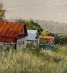 Картина маслом на холсте. Тикунова Ольга. Деревня на берегу реки