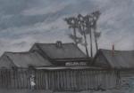 Ключевые слова: Современный пейзаж, деревня, пасмурный день, девочка с телефоном, ветер, тучи