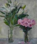 Розовые розы и белые лилии