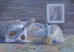 Холст на подрамнике. Работа не оформлена в раму, торцы закрашены. Картина из моей новой серии "Жизнь и приключения вислоухого котенка Шоти".