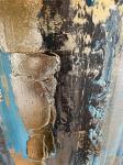 Интерьерная ментоловая картина с объемной фактурой, написана с использованием золотого акрила, листов золотой потали и перламутровых красок.
