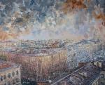 Ключевые слова: живопись мастихином живопись в интерьер картина питер купить рассвет в городе картина современный импрессионизм петербургский стиль стильная интерьерная картина крыши петербурга городской пейзаж маслом