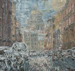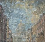 Оригинальная картина маслом, городской пейзаж мастихином в стиле экспрессионизм, петербургский стиль, зимнее утро в Петербурге, стильная интерьерная картина, живопись на продажу