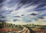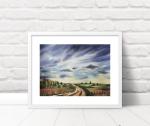 Оригинальная картина акварелью, сельский пейзаж, дорога домой, картина в подарок