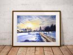 Этот зимний пейзаж я нарисовала со своего фото, сделанного на прогулке в парке Коломенское в Москве.