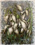 P.s.Надеюсь,что маленькие рыбки встретятся!!!. Картину можно вешать в любом положении- горизонтально или вертикально,у нее нет верха или низа…Картина - перевертыш.После полной просушки будет покрыта защитным лаком и оснащена подвесами.Толщина подрамника 3,5 см,торцы окрашены в цвет фона(светлая бирюза).