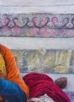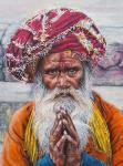На холсте изображен садху. Он одет в яркие одежды и сидит на ступенях, уходящих в бесконечность. Каждая ступень не похожа на другую. Его руки сложены в молитвенном жесте. Мимо идут люди, каждый своим путем и к своей цели. Садху на секунду обращает на себя внимание и задает один единственный вопрос: Куда идешь? Два слова всяким человеком прочитываются по-разному, по-разному и отвечают не него. Кто-то отмахнется и идет дальше, кто-то пошутит, кто-то нагрубит, а кого-то эти слова остановят . Что видите вы?
