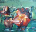 Руки белой женщины держат яйцо как символ жизни. Цветовая палитра состоит из активных контрастных цветов: красного, пурпурного, лазурного, синего и желтого. В масляной живописи элементы находятся в постоянном движении. Картина продолжает традиции русского авангарда и аналитического искусства Павла Филонова.