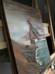 Картина "ОСТРОВА" входит в проект "На вулкане", посвящённый живописным видам Исландии. В работе представлена тема туманных Фарерских островов в сочетании с их необычными обитателями. Карина выполнена в уникальном авторском стиле фактурной живописи масляными красками.
